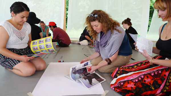 Methods & materials included collaborative collage, solar photo paper (cyanotype) and digital double exposure.